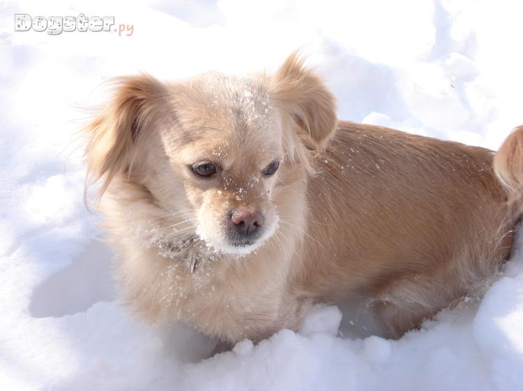 Обожает гулять зимой по снегу. Хотя я живу в Крыму и у нас он редко бывает, но зато когда выпадает - для Сюзи это настоящий праздник! Особенно она любит прыгать в сугробы и проваливаться в них.