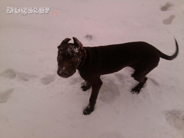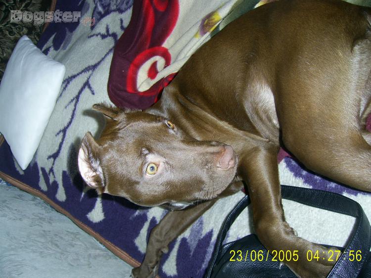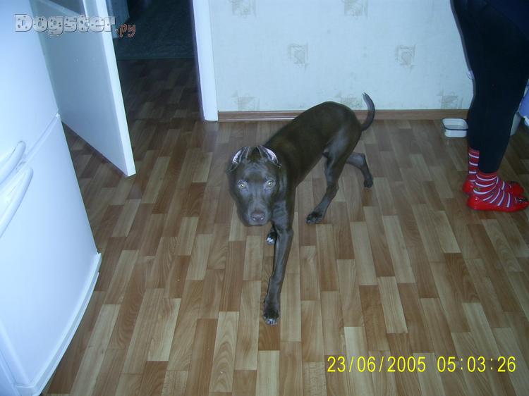 Окрас шоколад. Вес — 19 кг.
