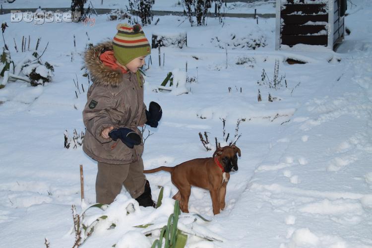 У моего старшего сына скоро будет день рожденья! И спросила что он хочет в подарок. Он перечислил мне много разной техники, а потом тихонько сказал: " Вообще-то я мечтаю о собаке! Но вы мне всё равно не купите." Я тогда промолчала на эти слова, но сразу вспомнила историю про Малыша и Карлсона! Мы с мужем долго думали, но всё же решились. В конце концов живём один раз! И мы хотим чтобы у детей было счастливое детство. Хочешь собаку? - Будет тебе собака!!! И тут перед нами встал вопрос выбора. Какую выбрать? Шарпея? - нет. Таксу? - нет. Бигля? - нет. Боксёра -Да,да,да!!! Искали долго. Обзвонили множество питомников и частников. Пока не наткнулись на объявление что у молодых боксёрчиков (мама - ЦВЕТОК ВОСХОДЯЩЕЙ ЛУНЫ и папа - БОНУС ЭВЕНТУС (есть на сайте)) родились прекрасные щеночки! Как только мы увидели первые фотографии, сразу влюбились в неё! Долго готовились к её приезду. И вот долгожданный день наступил - Тири дома!!! Радости детей не было придела. Когда вижу горящие от счастья глаза мальчишек, понимаю - Мы всё правильно сделали!!! Теперь у меня не только два сына, но ещё и дочка - Найтири!!!