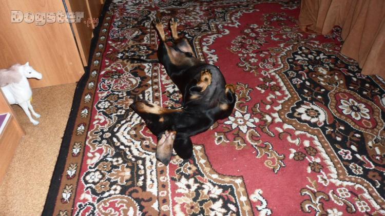 Окрас Чёрно-коричневый . Вес — 10 кг.