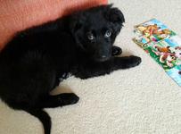 Отдам в добрые руки добрейшего щенка. Девочка 3 месяца, окрас черный, мягкая шерстка, на груди белая звездочка. Очень добрая собака, умненькая, ходит на пеленку, спокойная. Отлично ладит с другими животными, в т числе с кошками. Любит поиграть, но не навязчивая. Станет отличным домашним питомцем.