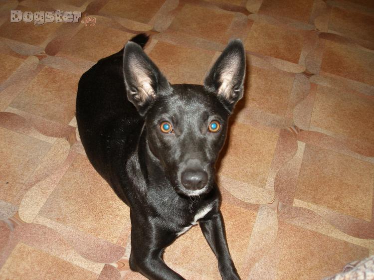 Окрас черный с белыми отметинами. Вес — 16 кг.