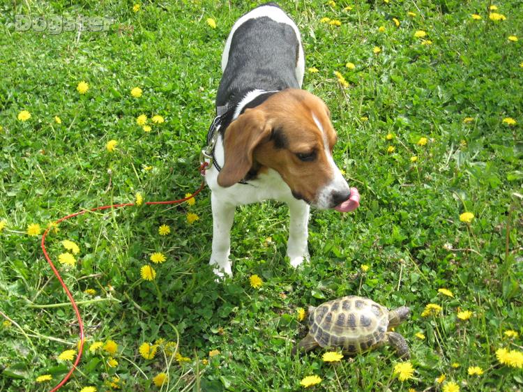 Бигль - это добрая, ласковая и веселая собака. Прирожденный исследователь неведомого, он так и норовит ...
